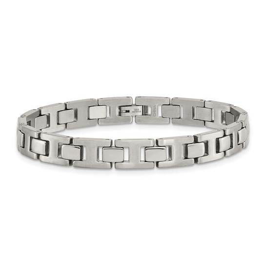 This men's stainless steel bracelet has brushed links with smaller polished links. 5/16in wide links, bracelet is 8 1/2 inches in length. This bracelet is composed of grade 316 stainless steel, known for its superior corrosion resistance. 316 steel is commonly used in stainless steel jewelry. Insist on 316 stainless steel. 316 steel is also known as marine grade stainless steel, for its high resistance to chloride corrosion. Stainless steel will not oxidize [rust] nor turn black. Imported.