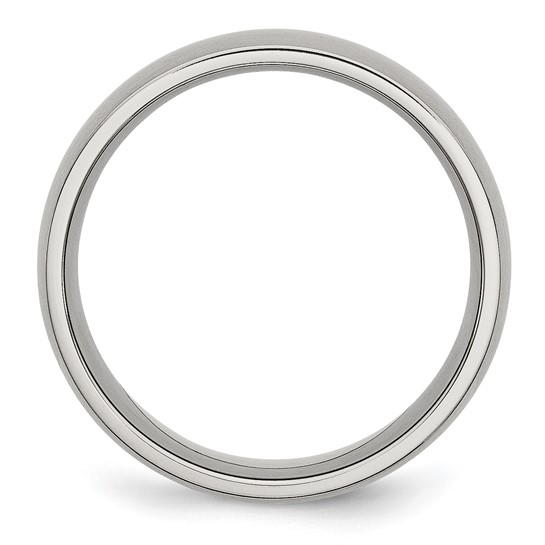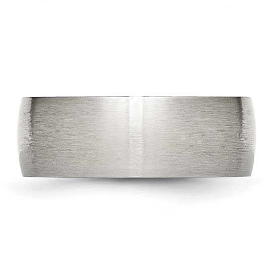 Band is 8mm wide. Domed center and brushed finish. Comfort fit available in half and whole sizes, 6-13. This ring is composed of grade 316 stainless steel, known for its superior corrosion resistance. 316 steel is commonly used in stainless steel jewelry. Insist on 316 stainless steel. 316 steel is also known as marine grade stainless steel, for its high resistance to chloride corrosion. Stainless steel will not oxidize [rust] nor turn black. Imported.