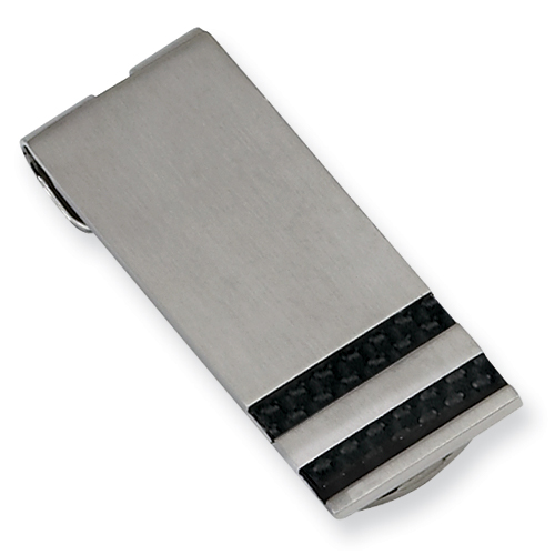 Black carbon fiber. Brushed finish. Money clip dimensions: 1 1/2in x 3/4in. This money clip is composed of grade 316 stainless steel, known for its superior corrosion resistance. 316 steel is commonly used in stainless steel jewelry. Insist on 316 stainless steel. 316 steel is also known as marine grade stainless steel, for its high resistance to chloride corrosion. Stainless steel will not oxidize [rust] nor turn black. Imported.