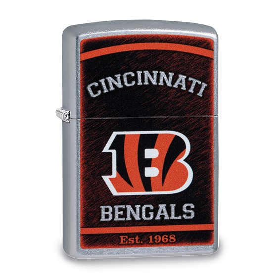 Cincinnati Bengals high polished chrome lighter is made in the USA by Zippo, the name in flame. The original Zippo liquid fuel lighter is the world's best pocket lighter. Features flint ignition, the famous Zippo click, distinctive chimney patters, and the Zippo guarantee.