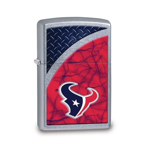 Houston Texans chrome lighter is made in the USA by Zippo, the name in flame. The original Zippo liquid fuel lighter is the world's best pocket lighter. Features flint ignition, the famous Zippo click, distinctive chimney patters, and the Zippo guarantee.
