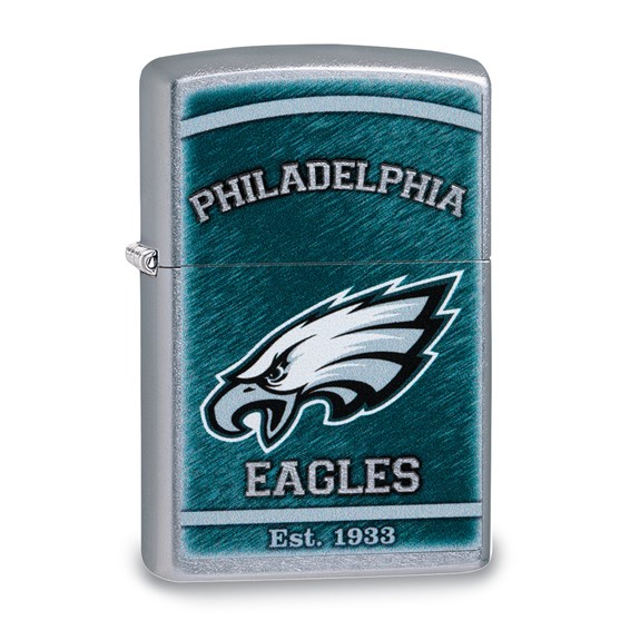 Philadelphia Eagles chrome lighter is made in the USA by Zippo, the name in flame. The original Zippo liquid fuel lighter is the world's best pocket lighter. Features flint ignition, the famous Zippo click, distinctive chimney patters, and the Zippo guarantee.