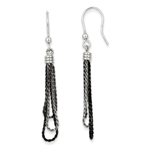 Dangle loop earrings have three colors of silver: black, white and silver. French wire backs. Made in Italy. Weight: 3.55 grams. Earrings feature black rhodium, rhodium and ruthenium plating.