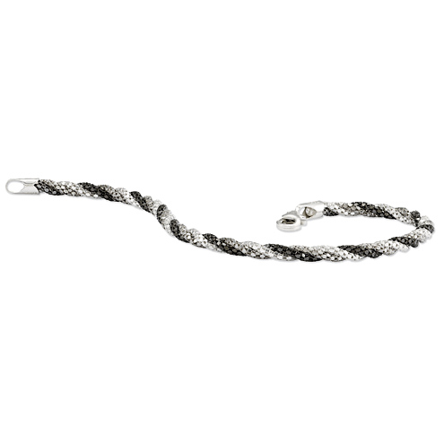 Braided silver bracelet has white, silver and black sterling silver strands. Length: 7 1/2in. Made in Italy. Weight: 4.15 grams.