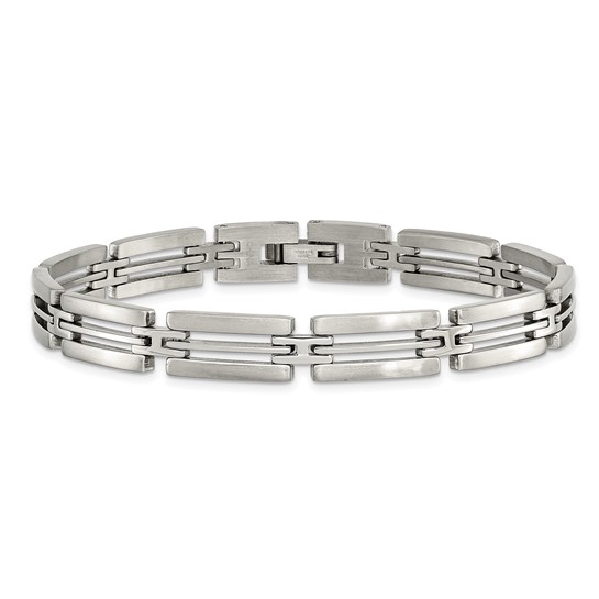 Brushed and polished finish. 5/16in wide links, bracelet is 8 3/4 inches in length. This bracelet is composed of grade 316 stainless steel, known for its superior corrosion resistance. 316 steel is commonly used in stainless steel jewelry. Insist on 316 stainless steel. 316 stainless steel is also known as marine grade stainless steel, for its high resistance to chloride corrosion. Stainless steel will not oxidize [rust] nor turn black. Imported.