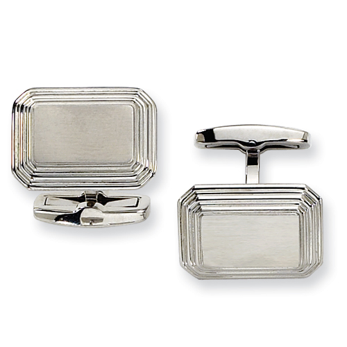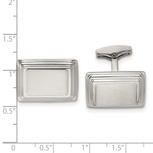 Stainless steel cufflinks have a brushed center and polished ridged edges. Oblong cuff links are 7/8in x 5/8in. This item is composed of grade 316 stainless steel, known for its superior corrosion resistance. Stainless steel will not oxidize [rust] nor turn black. Imported.