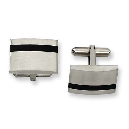 Stainless steel cufflinks have a single black strip accent and brushed finish. Cuff links are 7/8in x 1/2in. This item is composed of grade 316 stainless steel, known for its superior corrosion resistance. 316 steel is commonly used in stainless steel jewelry. Insist on 316 stainless steel. 316 steel is also known as marine grade stainless steel, for its high resistance to chloride corrosion. Stainless steel will not oxidize [rust] nor turn black. Imported.