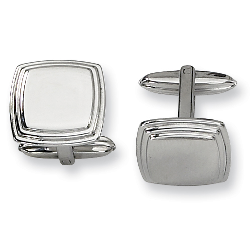 Polished finish. Oblong cuff links are 5/8in x 5/8in. This item is composed of grade 316 stainless steel, known for its superior corrosion resistance. 316 steel is commonly used in stainless steel jewelry. Insist on 316 stainless steel. 316 steel is also known as marine grade stainless steel, for its high resistance to chloride corrosion. Stainless steel will not oxidize [rust] nor turn black. Imported.