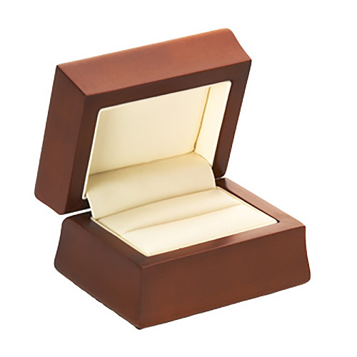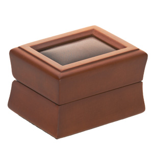 Amber wood with matte finish and beige leatherette interior. Matching, 2-piece outer carton included. Item dimensions: 3 1/8in x 2 3/8in x 2in. Weighs approximately 4.5 oz.