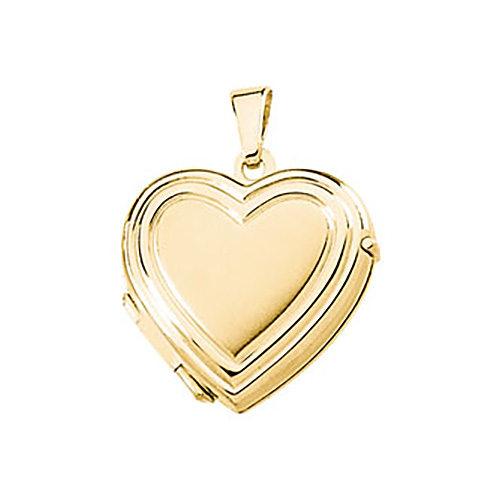 This small heart locket is made of polished 14k yellow gold. This locket is slightly smaller than a dime: 15.75X17.25mm. Red fabric interior. Weight: 1.80 grams. Available while supplies last.