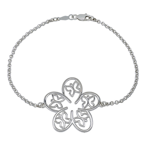 This bracelet features floral and butterfly elements with lobster clasp. Polished sterling silver. Length: 7 1/2in. Weight: 5.9 grams.