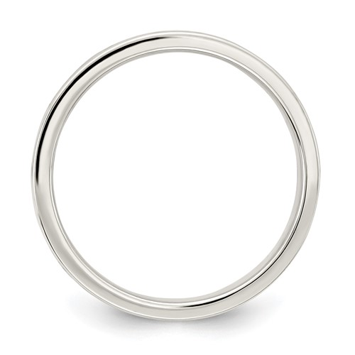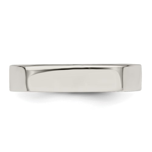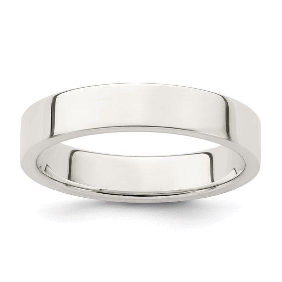 Solid sterling silver 4mm wedding band has a flat center and polished finish. Standard fit ring is made in USA. Thickness: 1.5mm. Available in half and whole finger sizes only, 4-12. Size 7 ring weighs approximately 3.7 grams.