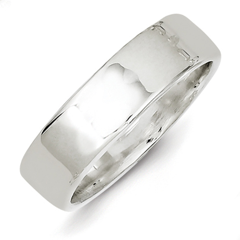 Solid sterling silver 6mm wedding band has a flat center and polished finish. Standard fit ring is made in USA. Thickness: 1.5mm. Available in half and whole finger sizes only, 4-12. Size 7 ring weighs approximately 5.3 grams.