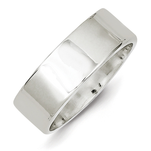 Solid sterling silver 7mm wedding band has a flat center and polished finish. Standard fit ring is made in USA. Thickness: 1.5mm. Available in half and whole finger sizes only, 4-12. Size 10 ring weighs approximately 7.3 grams.