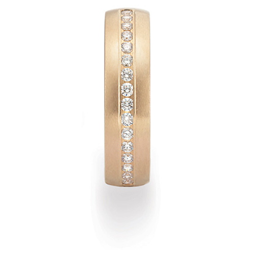 Benchmark 1/3 carat diamond 14k yellow gold men's wedding band has diamonds that go halfway around the ring. 16 x .02CT round brilliant diamonds. Diamond color G, clarity SI1. Channel set diamonds are carefully matched and subject to stringent inspection. Precision-set. Width: 6mm. Die struck and comfort fit. Made in USA.The Perfection of Precision SettingBenchmark is one of the few manufacturers to master the technology behind precision-setting. Our process allows as much of the diamond's surface to be displayed while also providing superior security for the stones. Hand-set diamonds are often inconsistently secured and have an uneven surface. Benchmark bands are engineered for perfection. Our customers have come to expect the best, and we take pride in delivering it every day.