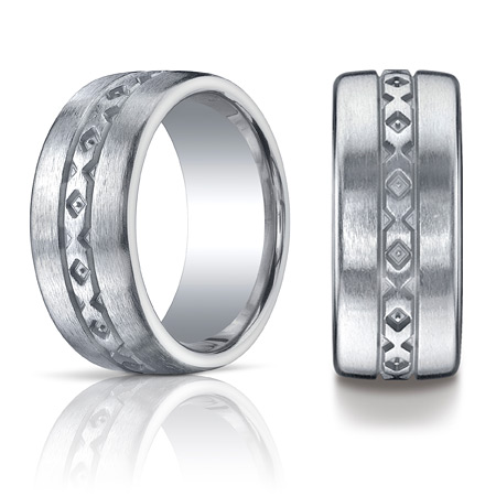 The Montezuma is an authentic Benchmark® band is made of Argentium Silver. Comfort fit. Brushed finish. Width: 10mm.Benchmark's Argo collection offers a variety of designs in argentium silver. Argentium is the most advanced silver alloy in the market. Benchmark's Argo rings are tarnish-resistant and stronger than sterling silver offered elsewhere.