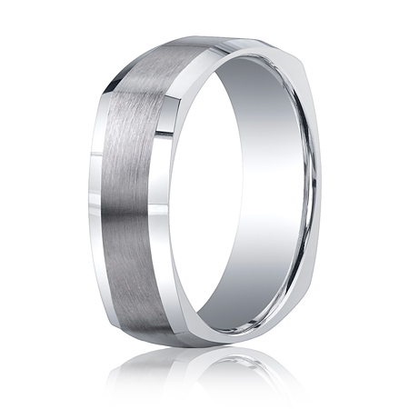 This Argentium silver 7mm wedding band has a four-sided design with a satin-finished center and polished beveled edges. Comfort fit. Made in the USA. Available in whole and half finger sizes, 6-14.Argentium is the most advanced silver alloy in the market. Argentium silver rings are tarnish-resistant and stronger than sterling silver offered elsewhere.