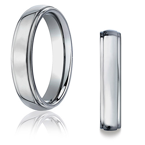 Standard fit. High polished finish with step down edges. Width: 5mm only. Solid aircraft grade titanium. Made in the USA.Manufacturer's Lifetime GuaranteeIf your ring is ever damaged during normal wear, the manufacturer will repair or replace your wedding ring free of charge. If your finger size ever changes, the manufacturer will resize or replace your ring free of charge. In the case that the manufacturer has to add material to your ring, you will only be charged for the difference in the additional metal or stones needed to restore the piece. Guarantee ParametersThe guarantee does not cover rings that have been ordered in the wrong finger size or finger sizes that may have changed between the time of purchase and the actual physical receipt of the piece. Third party alterations, other than engraving, will void the warranty.Manufacturer reserves the right to deny the Lifetime Guarantee for any ring that shows signs of abuse or tampering.
