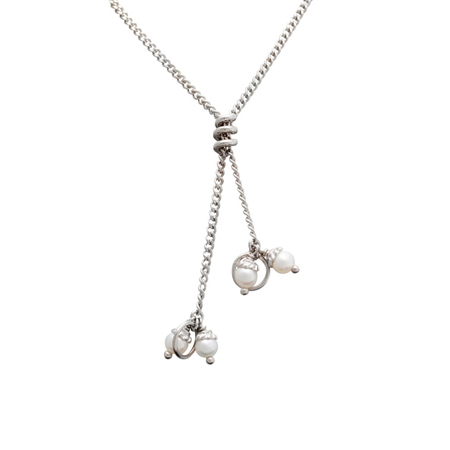 Y shaped necklace features four white 4mm freshwater cultured pearls. Curb chain width: 1.5mm, length: 27in. This necklace is part of the Ones We Love jewelry collection.