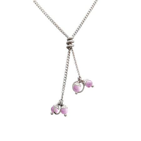 Y shaped necklace features four pink 4mm freshwater cultured pearls. Curb chain width: 1.5mm, length: 27in. This necklace is part of the Ones We Love jewelry collection.