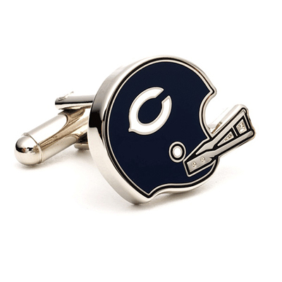 Chicago Bears helmet cufflinks are made of stainless steel. Each pair of officially licensed cufflinks ships in an elegant blue NFL folder box. Item details:Approximately 3/4in x 3/4in [size of a penny]Enamel and rhodium platedBullet back closure
