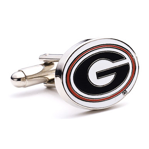 Celebrate your University of Georgia team with officially licensed cufflinks. Each pair of cufflinks ships in an elegant red foldover box.Item details:Approximately 3/4in x 1/2inEnamel and rhodium platedBullet back closure