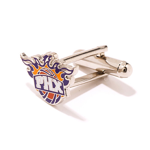 Phoenix Suns cufflinks are made of stainless steel and enamel. Officially licensed NBA® cufflinks. Each pair of cufflinks ships in an elegant orange NBA® foldover box.Item details:Approximately 3/4in x 3/4in [size of a penny]Enamel and rhodium platedBullet back closure