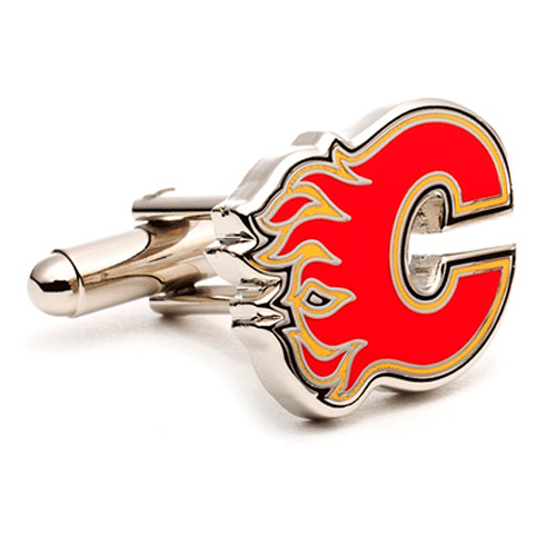 Calgary Flames cufflinks are made of stainless steel and enamel. Officially licensed NHL® cufflinks. Each pair of cufflinks ships in an elegant black NHL® folder box.Item details:Approximately 3/4in x 1/2inEnamel and rhodium platedBullet back closure