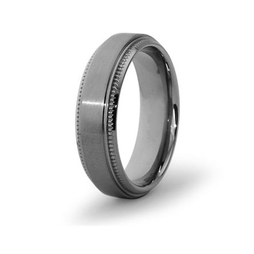 This titanium ring has a milgrain design with a flat center and step down edges. Available in whole finger sizes 7-12 only. 6.5mm width. Comfort fit. Made of commercially pure [CP] titanium in China.