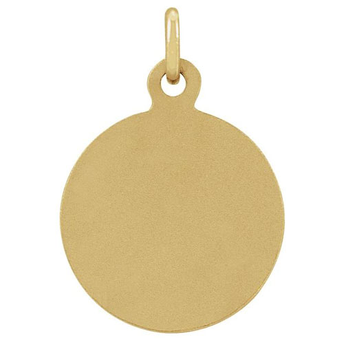 Polished 14k yellow gold medal. No inscription. Dimensions: 10.15x12mm, half the size of a quarter. Weighs 1.0 grams. Please note: weight is approximate, actual weight may vary. Chain not included.