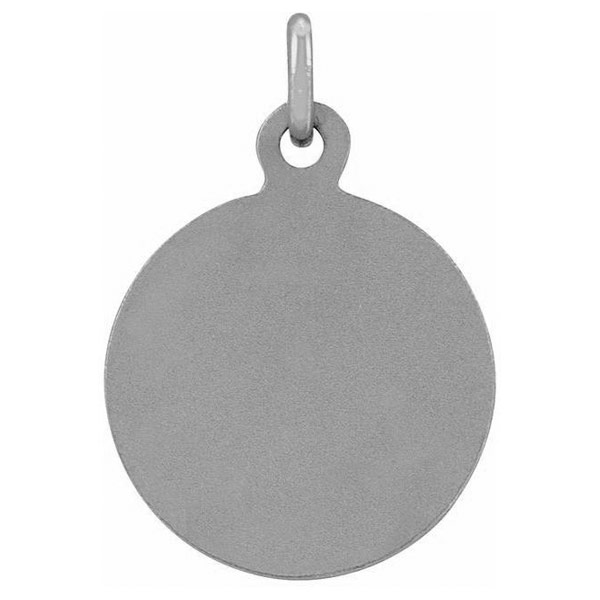 This small round St. Francis charm is made of polished 14k white gold. Dimensions: 10.15mm x 12mm. Weighs 1.0 grams. Please note: weight is approximate, actual weight may vary. Chain not included.