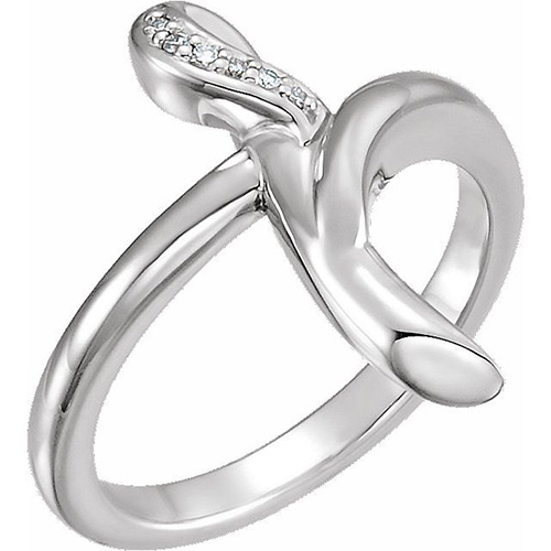 This solid 14k white gold ring features six 1mm round full cut diamond accents; G-H color, SI1 clarity, .025 ct tw. Size 7 ring weighs 4.95 grams. Please note: weight is approximate, actual weight may vary. Available in size 7 only.
