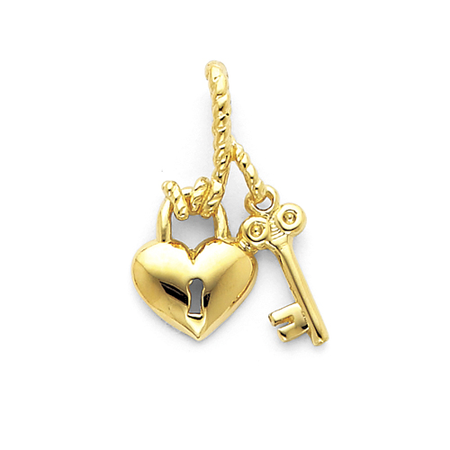 Key dimensions: 1/8in x 1/2in; heart is 3/8in in width. Polished, 14kt yellow gold charm weighs approximately 1.6 grams. Open back. Chain not included. Made in the USA.