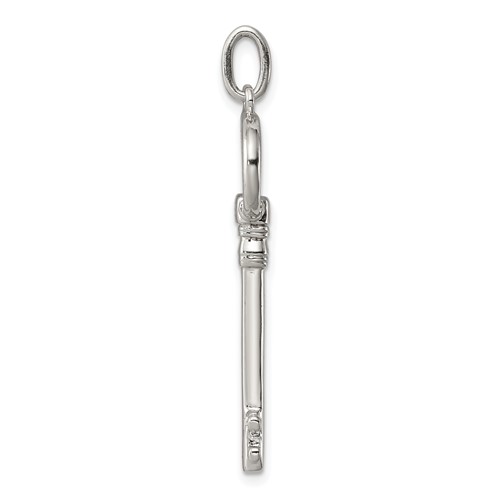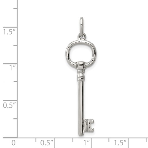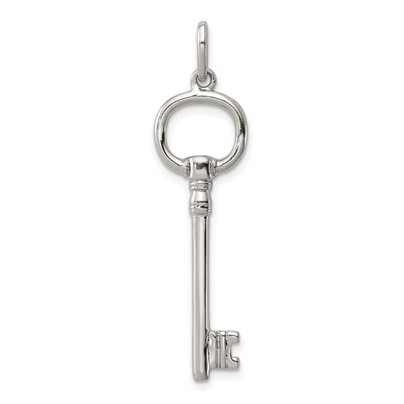 Key pendant is made of polished sterling silver. Item weighs approximately 2 grams. Chain not included.