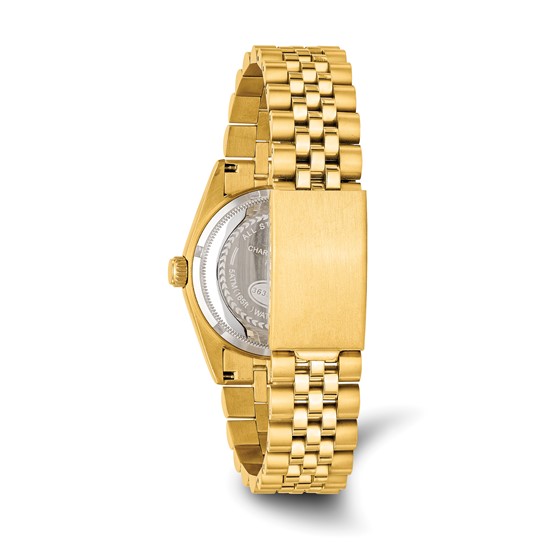 This genuine men's Charles-Hubert Paris watch includes a gift box and warranty card.Off-white dial with date0.5 micron 14k yellow gold-plated stainless steel 35mm case and bandStainless steel casebackMineral crystalScrewdown crown, screwbackGold-tone hands and markersJapanese movementWater resistance tested to 5 ATMWarranty InformationEach Charles-Hubert Paris watch is backed by a lifetime buckle-to-buckle or lifetime warranty on movement.
