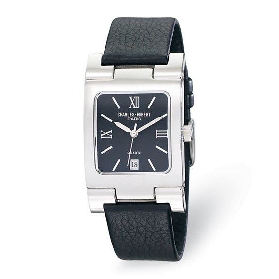 This genuine men's Charles-Hubert Paris watch includes a gift box and warranty card.Black dial with dateStainless steel case and casebackGenuine black calf leather bandMineral crystalChrome hands; Roman numeralsJapanese movementWater resistance tested to 3 ATMWarranty InformationEach Charles-Hubert Paris watch is backed by a lifetime buckle-to-buckle or lifetime warranty on movement.
