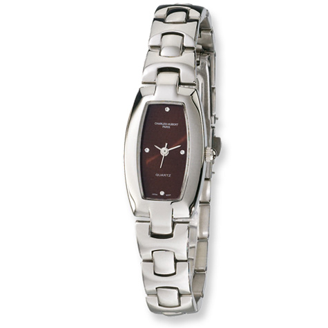This genuine ladies' Charles-Hubert Paris watch includes a gift box and warranty card.Sunray brown dialStainless steel case, caseback and bandMineral crystalSilver-tone hands and markersJapanese Quartz movementWater resistance tested to 3 ATMWarranty InformationEach Charles-Hubert Paris watch is backed by a lifetime buckle-to-buckle or lifetime warranty on movement.