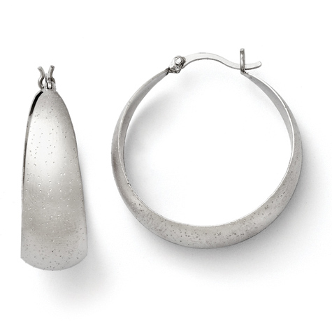 The surface of these Radiant Essence hoop earrings sparkles with shimmering points. Hinged hoop earrings are made of polished sterling silver with rhodium plating. Approximate dimensions: 1 1/4in x 1 3/8in. Approximate item weight: 7.1 grams. Imported.