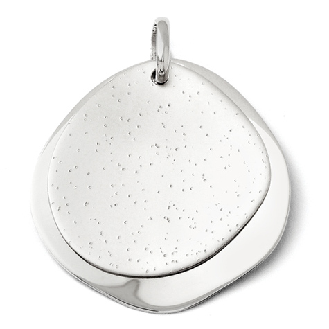 The surface of this Radiant Essence pendant sparkles with shimmering points. Oblong pendant is made of sterling silver with rhodium plating. Dimensions: 1 1/8in x 1 1/8in, slightly larger than a quarter. Approximate item weight: 6.0 grams. Imported.
