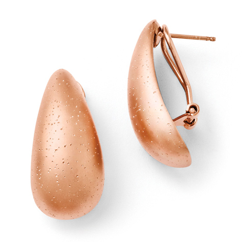 The surface of these Radiant Essence omega back earrings sparkles with shimmering points. Earrings are made of 14k rose gold-plated sterling silver. Approximate dimensions: 1in x 7/8in. Approximate item weight: 11.5 grams. Import.