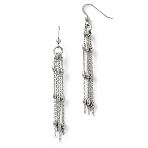 These strand beaded earrings are composed of solid, polished sterling silver. Shepherd hook dangle earrings are made in Italy. Length: 2 1/2in. Approximate item weight: 3.0 grams. Pair with matching bangle bracelet QLF171 and necklace QLF178.