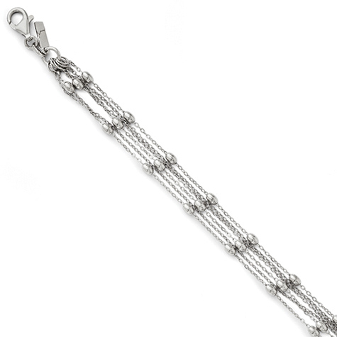 Six strand beaded bracelet is made of polished sterling silver and made in Italy. Length: 7/ 1/2in. Approximate item weight: 4.9 grams. Available while supplies last.