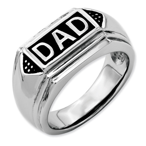DAD ring is made of polished stainless steel. Black enamel. Available in 9-12, whole sizes only. Imported. Approx. weight: 8.43 grams