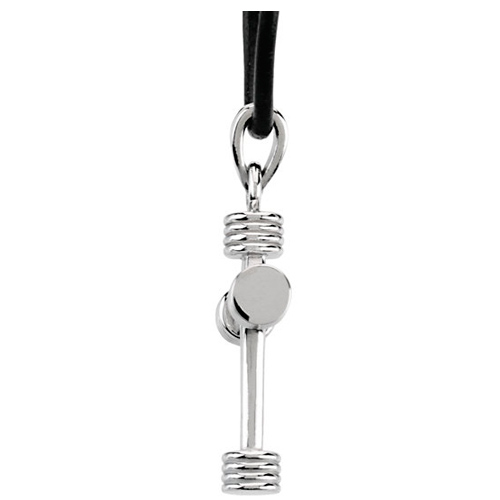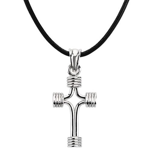 This tubular cross is made of polished sterling silver and dangles from an 18in long genuine black leather cord. Dimensions: 24.25mm x 15mm. This item is the size of a quarter. Weight: 3.9 grams. Chain sold separately.