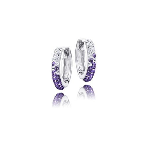 Louisiana State University crystal huggie earrings are covered with purple and white Austrian crystals. Sterling silver. Earring dimensions: 14mm x 3.28mm. Officially licensed.