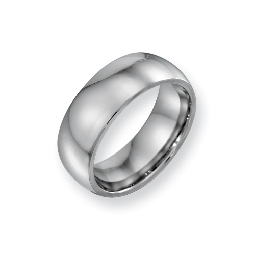 Comfort fit cobalt ring is 8mm wide. Ring has a domed, polished center. Made of cobalt chromium. Enjoy our limited lifetime warranty. Imported.About Cobalt ChromiumCobalt chromium is a bright white alternative metal. It is as white as platinum, hypoallergenic, shatterproof and highly scratch resistant. Cobalt rings will not chip or crack.