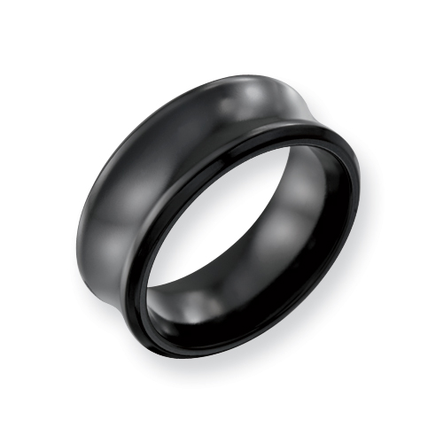 Comfort fit band has a concave center. Width: 9mm. Polished finish. Made of black Ti. Enjoy our limited lifetime warranty. About Black TiEach ring in the Black Ti collection possesses the same benefit as gray titanium. Black Ti is the only non-coated, completely nickel-free and inert titanium alloy that can be processed to black. Black Ti was created through extensive research and development in blending titanium with other strategic elements.Black Ti is a proprietary alloy which miraculously experiences an atomic transformation at the molecular level to become ceramic, turning the titanium black from the outside in by exposing the element to extreme heat. The severe hardness created through this unique process yields a supremely scratch resistant surface.