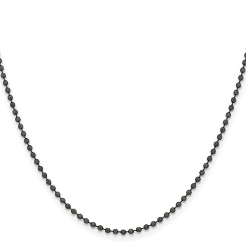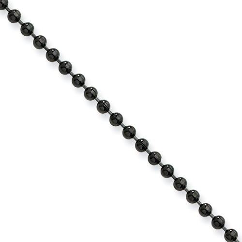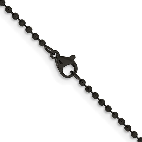 Black-plated steel bead chain dimensions: 2.0mm wide, 24in length. Fancy lobster clasp. Weight: 4.98 grams. This bead chain is composed of grade 316 stainless steel, known for its superior corrosion resistance. Imported.