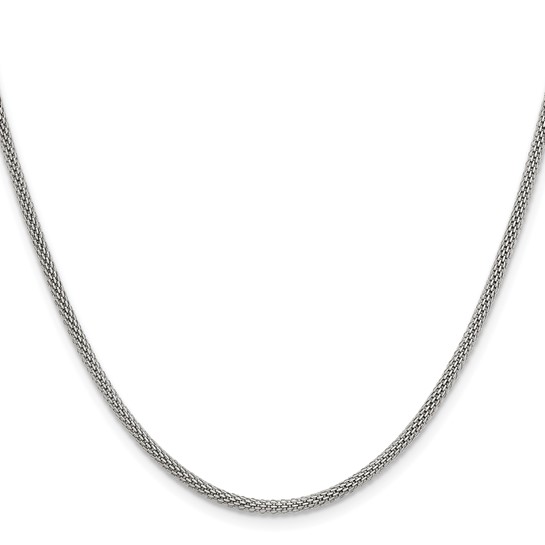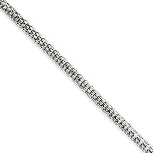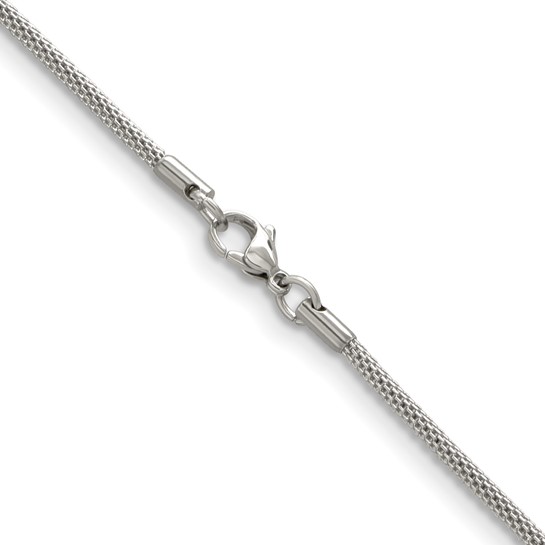 Steel bismark chain dimensions: 2.5mm wide, 30in length. Fancy lobster clasp. Weight: 7.94 grams. This snake chain is composed of grade 316 stainless steel, known for its superior corrosion resistance. Imported.