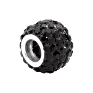 Kera black crystal bead is made of polished sterling silver. Dimensions: 12mm x 8mm. Weight: 0.15 grams.